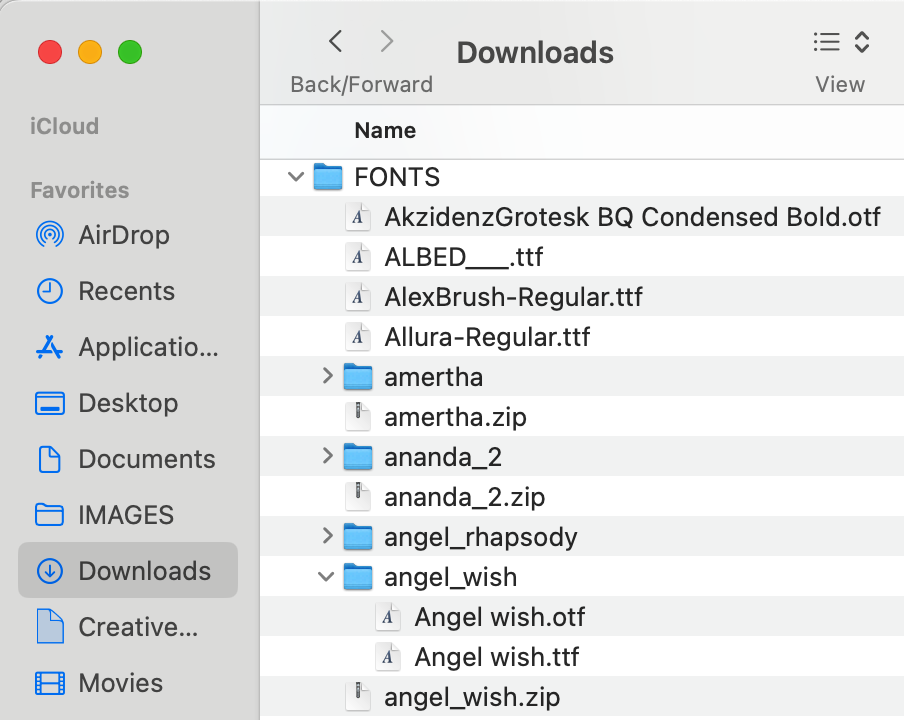 extension such as angel_wish.zip. That is the downloaded zipped font file.