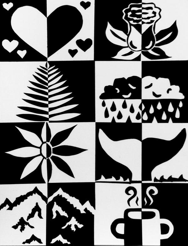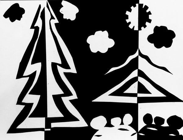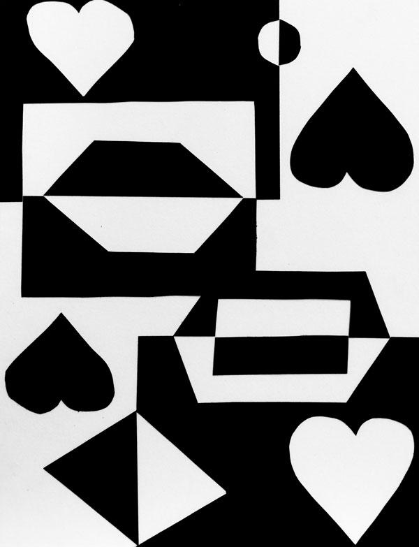 Create a composition using different cut out shapes in various sizes as necessary. Use the three types of figure/ground relationship to create a unique and effective composition: