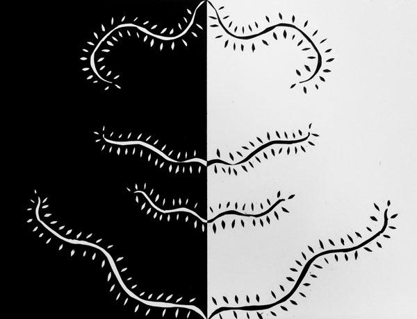 Ambiguous: Elements may appear to be both figure and ground at the same time. They form interesting shapes, and the viewer can make their own interpretation.The figure and ground challenges the viewer to find a focal point. Figure is enmeshed into the ground.There is no discernable dominance.