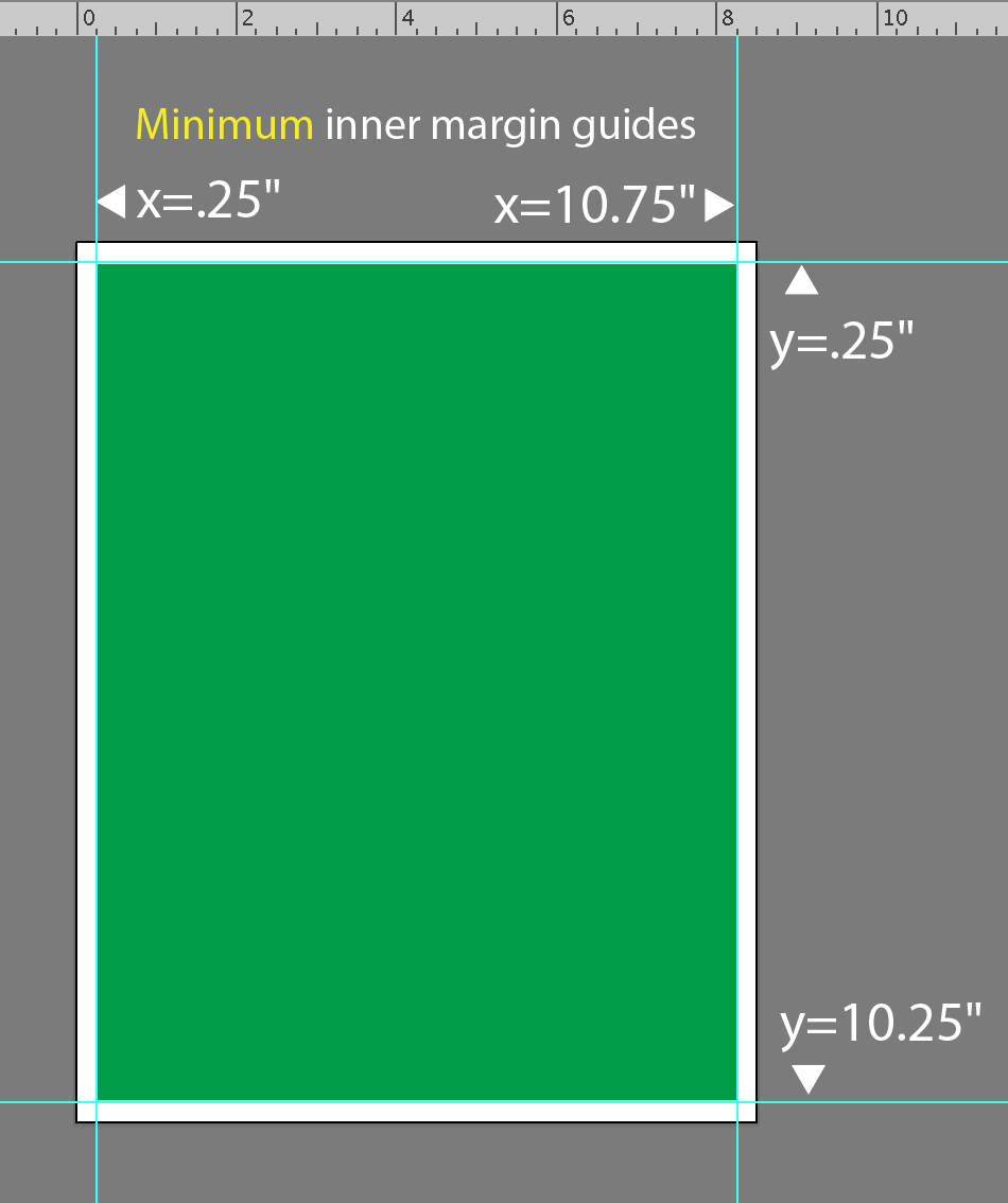 Below I have where you can set your guidelines on an illustrator page for interior margins.