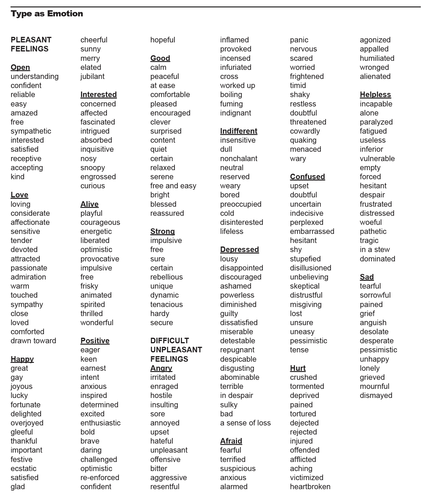 Below is a list of emotions to get you thinking about your project!